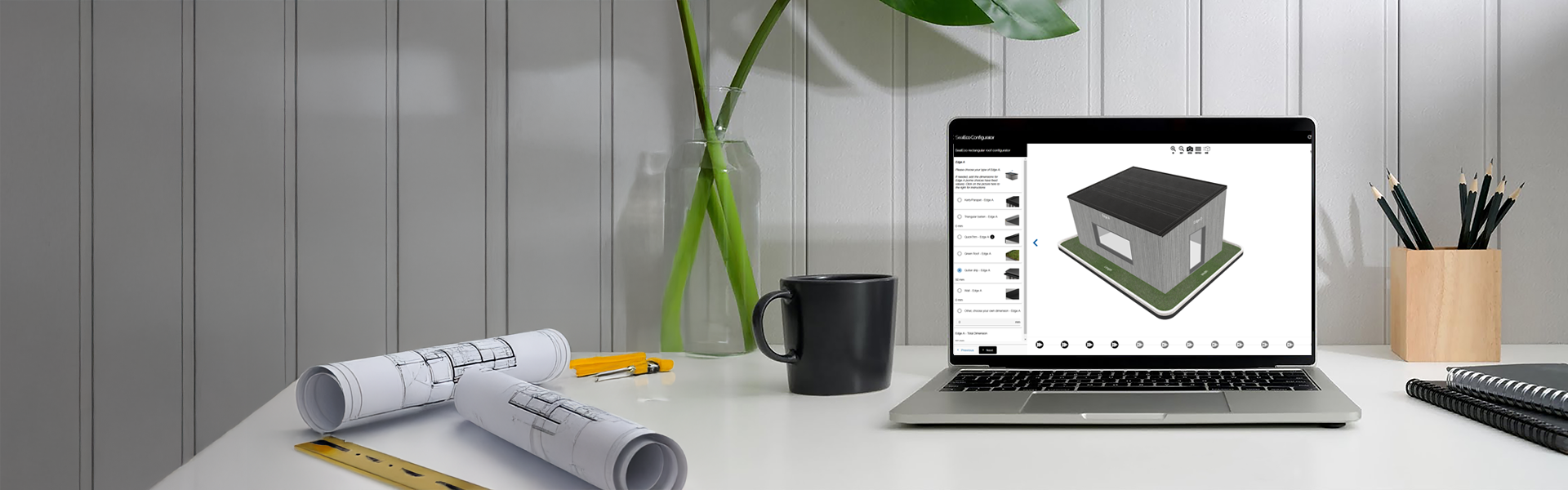 Our configurator makes it easy to customize your project to your needs. You can include different areas such as green roofs, triangular strips and much more. Create a solution that suits your project.
