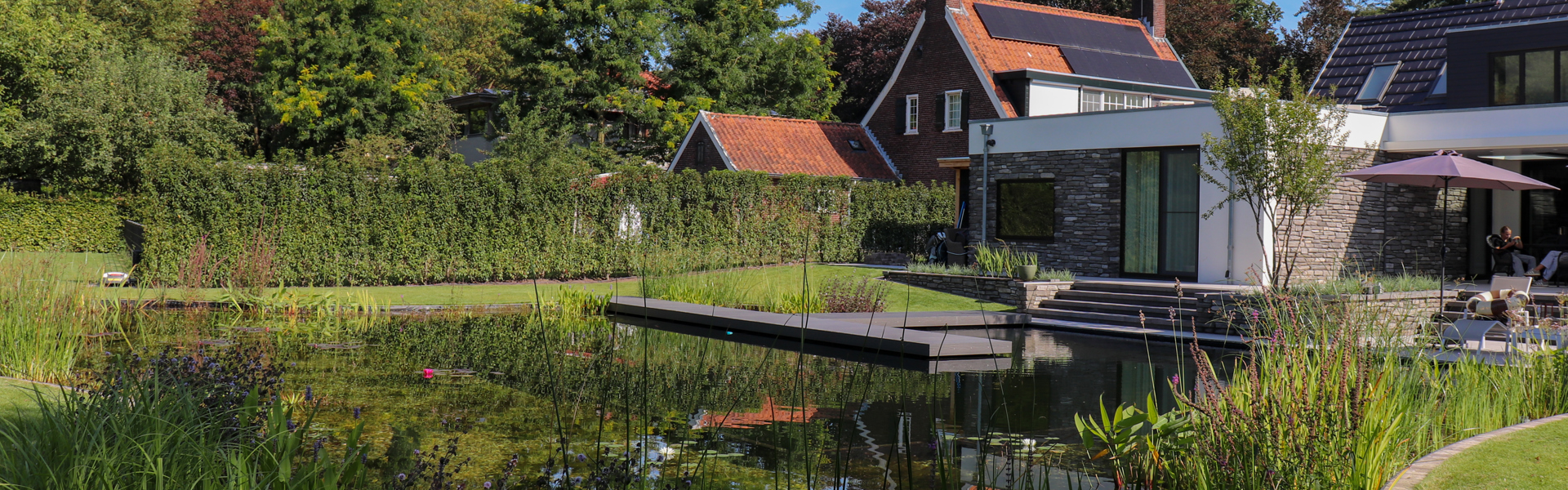 'Dat wij deze prijs winnen, tijdens een feestelijke uitreiking op een congres met alle partijen die bezig zijn met natuurlijk zwemwater, dat is echt geweldig', zegt Sander Voortman van Lilypond voor de Hovenier. 'Het is een enorme opsteker voor ons team, van de ontwerpers, de bouwers tot en met de servicemedewerkers. Iedereen zet dagelijks z'n beste beentje voor. We hadden dit project ingezonden omdat het op alle fronten aan de kenmerken van een natuurlijk zwembad voldoet: geheel natuurlijk gezuiverd, strak vormgegeven, inclusief folie die Mediterraan blauw kleurt, luchtwarmtepomp, onderwaterverlichting, inlooptrappen enzovoorts. Dat de jury én het publiek het geheel een prijs waard vinden, daar hangen wij graag de vlag voor uit.'